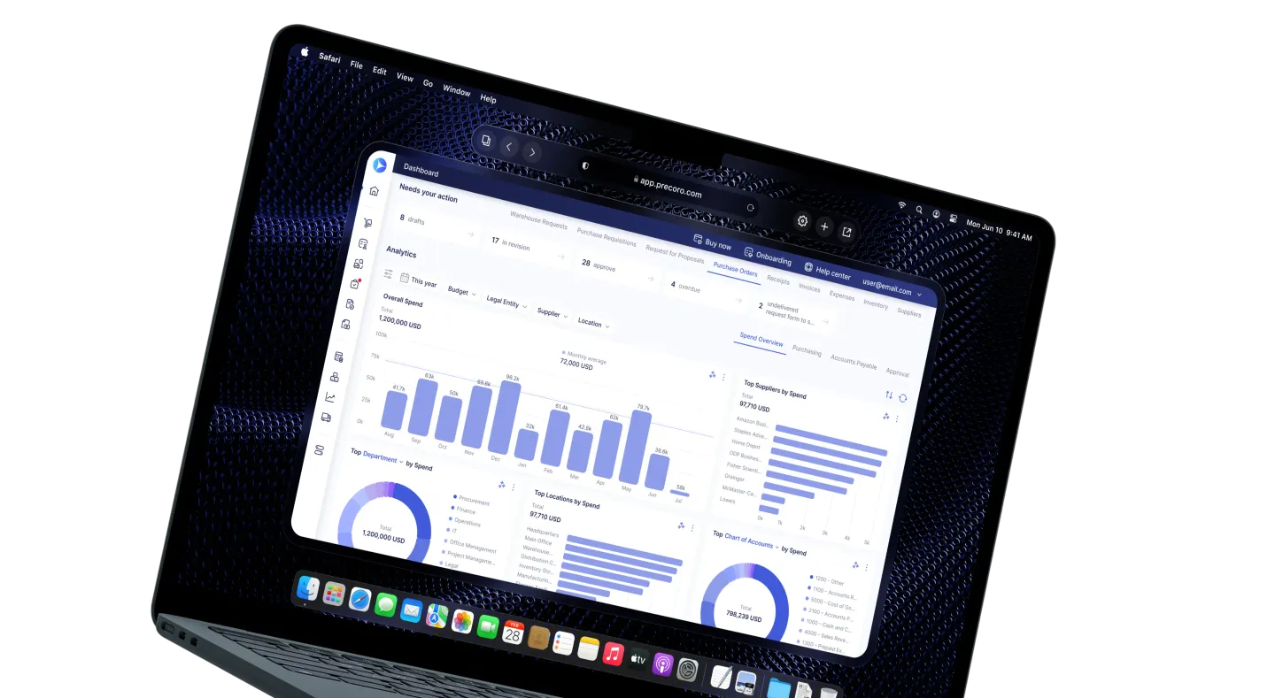 Monitor the operational signals that matter across requests, approvals, suppliers, and spend so teams can spot progress and act earlier.